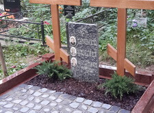 Мы восстанавливаем могилы исходя из любого исходного состояния. Так было и в этот раз. Мы изготовили и установили гранитный цоколь из красного гранита, клиент просил избегать черного цвета. Установили дубовые кресты и восстановили положение памятника, который был на могиле изначально. Посадили два можжевельника и оставили зону для будущих посадок цветов.